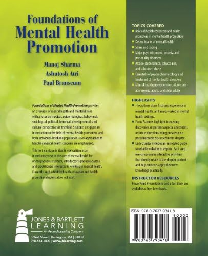 Amazon Com Foundations Of Mental Health Promotion 9780763793418 Sharma Manoj Atri Ashutosh Branscum Paul Books