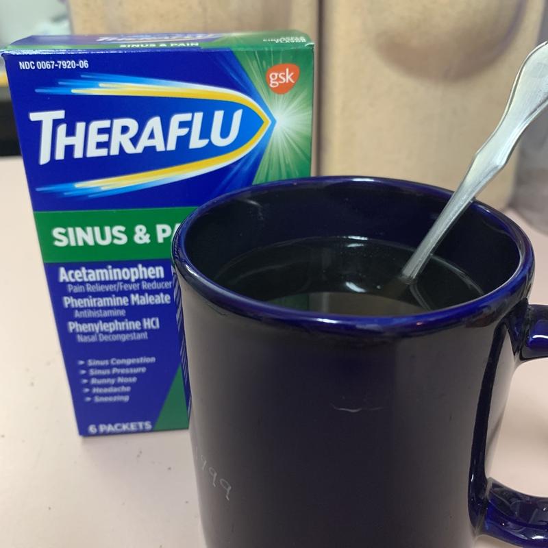 Use a decongestant or saline nasal spray. Use 8 ounces of hot water or heat up 8 ounces cold water and stir in one packet of. Theraflu Sinus Pain hot liquid powder should not be given to children under 12 years old.
